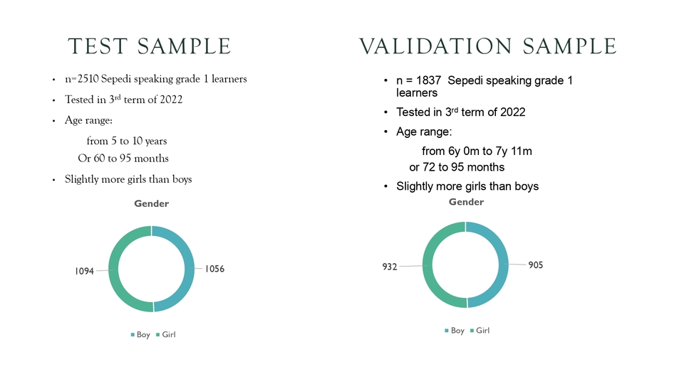 • Sepedi instrument development post pilot (add to English, IsiXhosa, Afrikaans developed so far in South Africa)