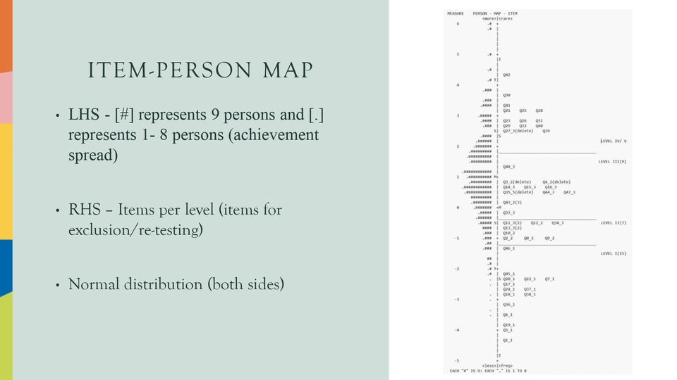 • The challenge was to find out whether the item did not ‘fit’ the model because of level inconsistency, translation, or cultural relevance.