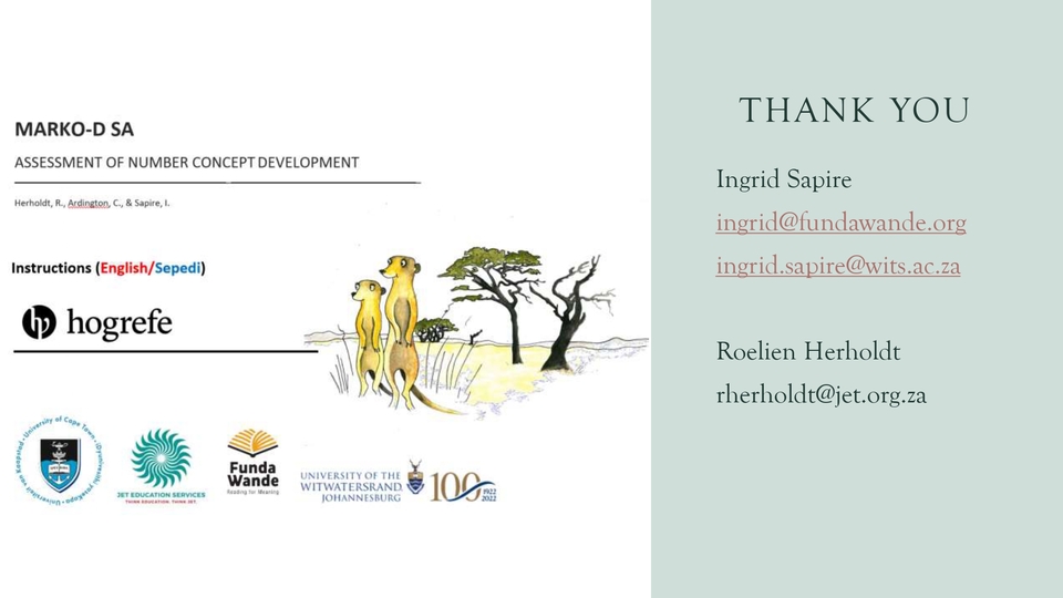 • This is in line with the South African school curriculum for the foundation phase (elementary school) that requires basic number concepts.