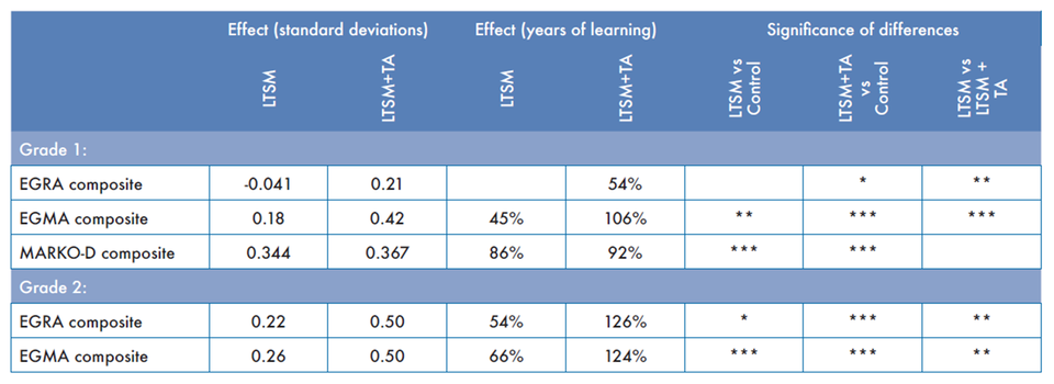The LTSM and LTSM+TA arms also receive training and are monitored by the programme team.